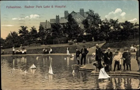 Ak Folkestone Kent England, Radnor Park Lake and Hospital