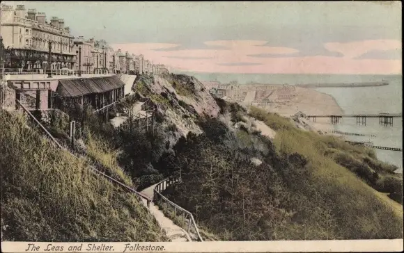 Ak Folkestone Kent England, The Leas and Shelter