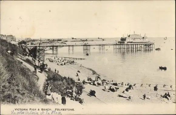 Ak Folkestone Kent England, Victoria Pier und Strand