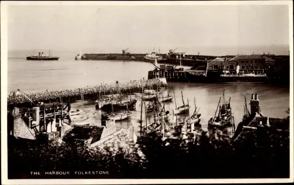 Ak Folkestone Kent South East England, Harbour