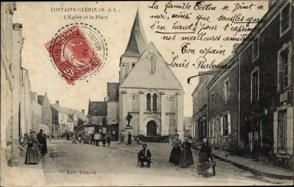 Ak Fontaine Guerin Maine et Loire, L'Eglise et la Place