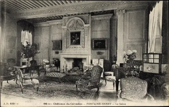 Ak Fontaine Henry Calvados, Le Chateau, Le Salon