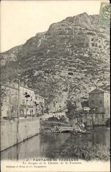 Ak Fontaine de Vaucluse, La Sorgue et le Chemin de la Fontaine