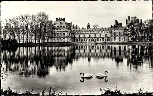 Ak Fontainebleau Seine et Marne, Palais vue de l'Etang aux Carpes, Schwäne