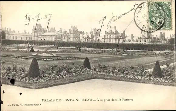 Ak Fontainebleau Seine et Marne, Palast, Blick auf das Parterre