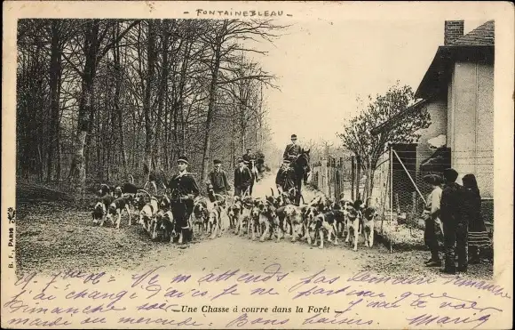 Ak Fontainebleau Seine et Marne, Une Chasse a courre dans la Foret
