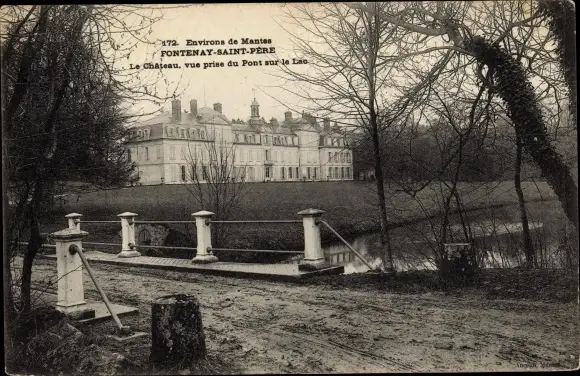 Ak Fontenay Saint Père Yvelines, Le Chateau, vue prise du Pont sur le Lac