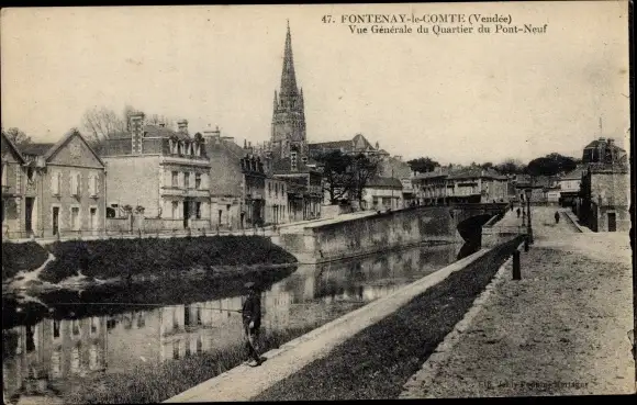 Ak Fontenay le Comte Vendée, Vue Generale du Quartier du Pont Neuf
