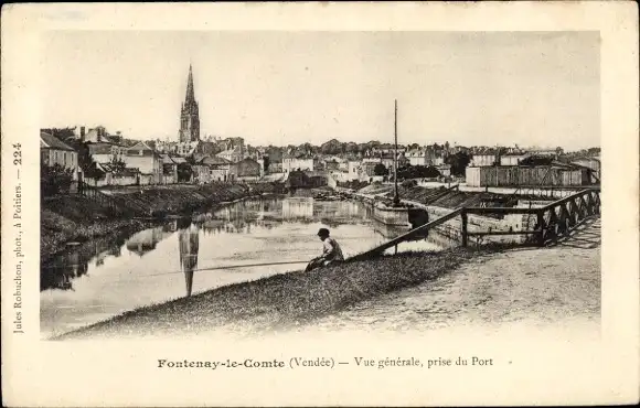 Ak Fontenay le Comte Vendée, Vue generale, prise du Port, Angler