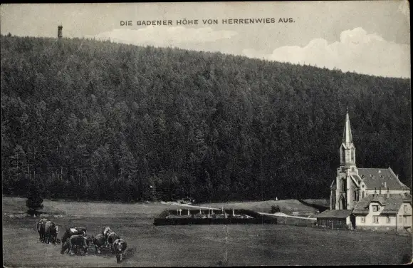 Ak Forbach Baden, Die Badener Höhe von Herrenwies aus, Kirche