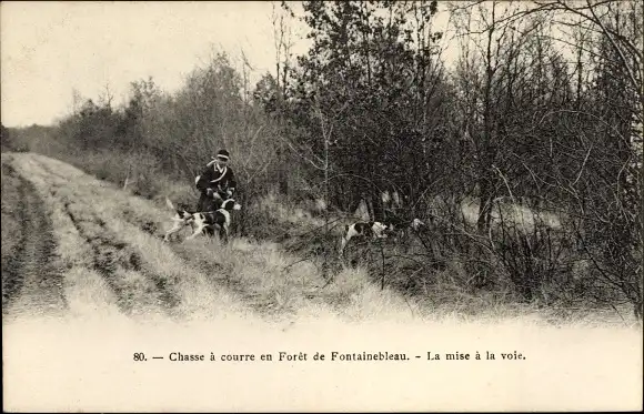 Ak Foret de Fontainebleau Seine et Marne, Jagd, Fährtensuche