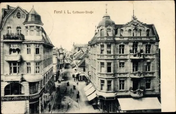 Ak Forst in der Lausitz, Cottbuser Straße, Geschäft Krüger & Oberbeck