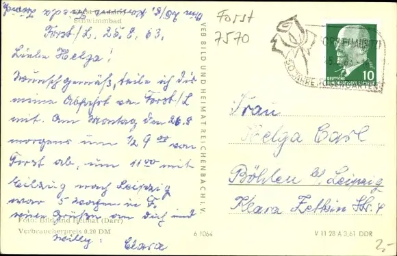 Ansichtskarte, Postkarte, Badeanstalt, Schwimmbad, Freibad, Strandbad, Volksbad