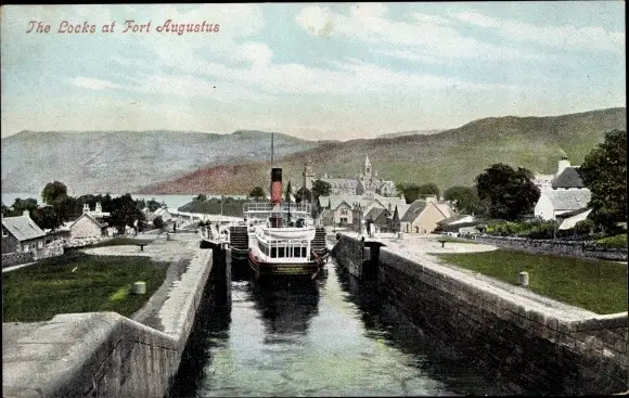 Ansichtskarte, Postkarte, Schleuse, Schleusenkammer, Wehr, Schleuserwärter, Schleusentor