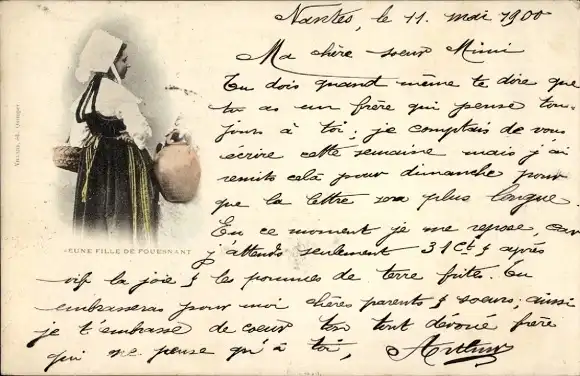 Ak Fouesnant Finistère, Junges Mädchen