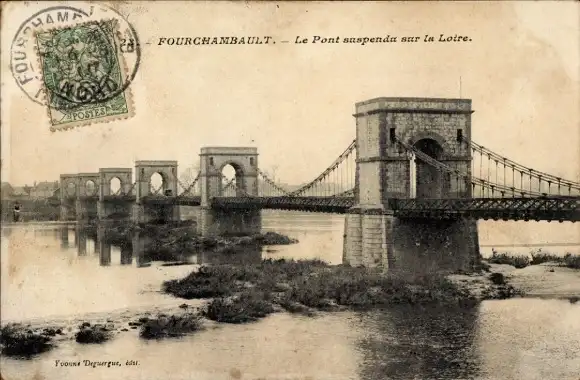 Ak Fourchambault Nièvre, Pont suspendu sur la Loire
