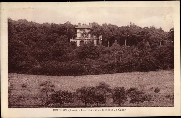 Ak Fourges Eure, Bois vus de la Route de Gasny