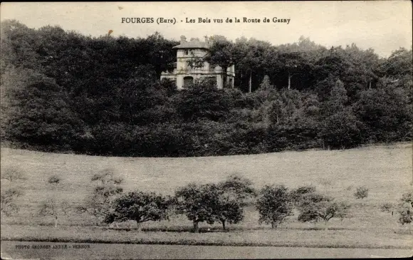 Ak Fourges Eure, Les Bois depuis la Route de Gasny