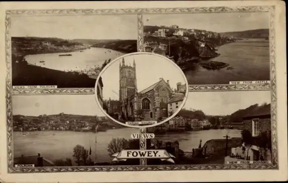Ak Fowey Cornwall England, Polruan, Blick vom Schloss, Pfarrkirche