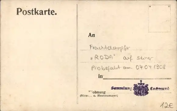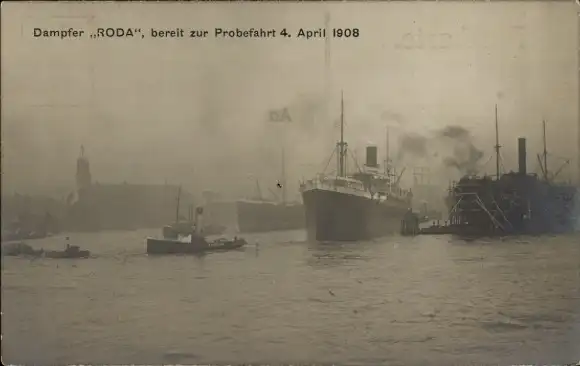 Ak Frachtdampfer Roda, Probefahrt 1908
