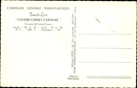 Ak Frachtschiff Caraibe-Carbet-Carimare, CGT, French Line