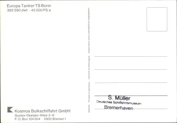 Ak Frachtschiff, Europa Tanker TS Bonn