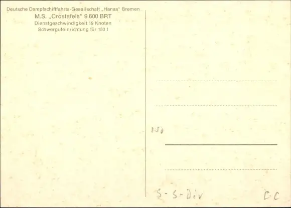 Ak Frachtschiff MS Crostafels, DDG Hansa