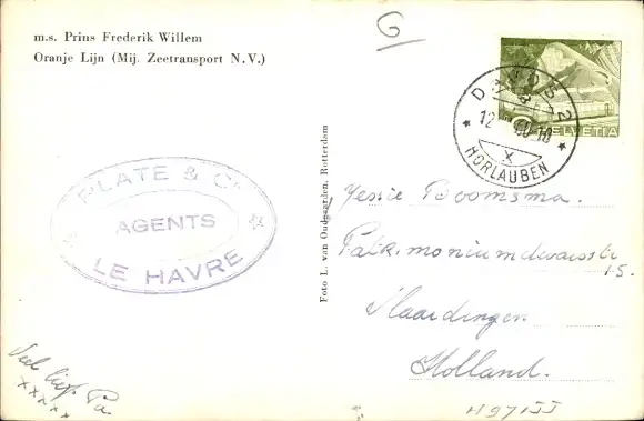 Ak Frachtschiff M.S. Prins Frederik Willem, Oranje Lijn