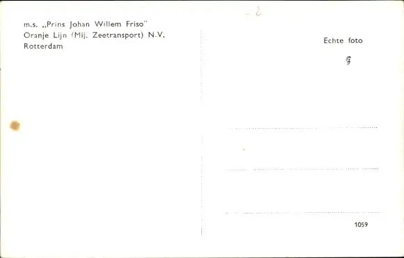 Ak Frachtschiff MS Prins Johan Willem Friso, Oranje Lijn