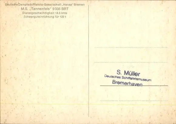 Ak Frachtschiff MS Tannenfels, DDG Hansa
