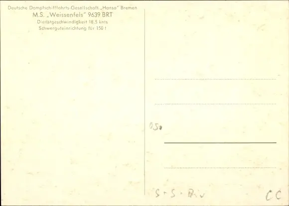 Ak Frachtschiff MS Weißenfels, DDG Hansa