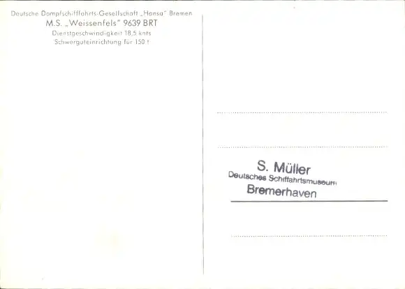 Ak Frachtschiff MS Weißenfels, DDG Hansa