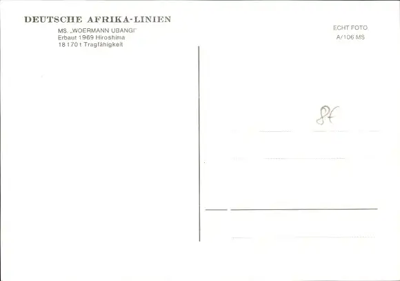 Ak Frachtschiff MS Woermann Ubangi, Deutsche Afrika-Linien