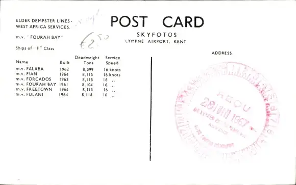Ak Frachtschiff M.V. Fourah Bay, Elder Dempster Lines