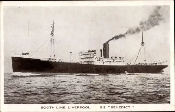 Ak Frachtschiff SS Benedict, Booth Line Liverpool