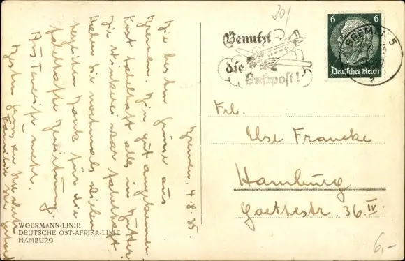 Zustand, siehe Scan, gelaufen, 1935 - ca 14 cm X 9 cm