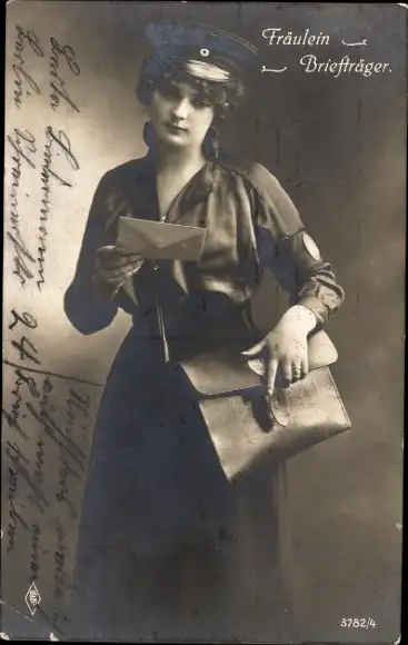 Ak Fräulein Briefträger, Frau in Uniform, Brieftasche, Brief
