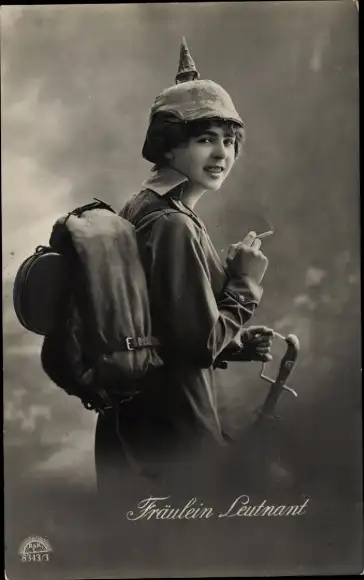 Ak Fräulein Leutnant, Frau in Uniform, Zigarette