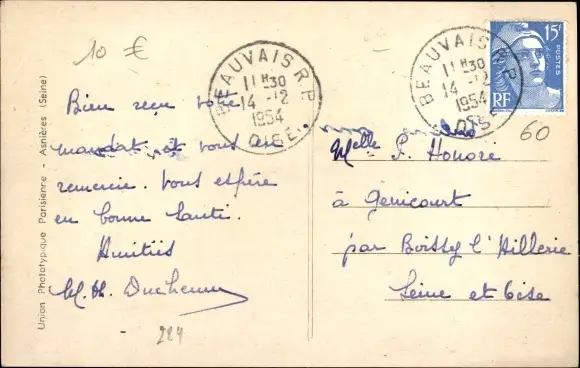 Zustand, siehe Scan, gelaufen, 1954 - ca 14 cm X 9 cm