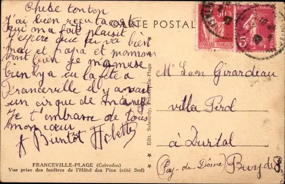 Ak Franceville Plage Calvados, Vue prise des fenetres de l'Hotel des Pins