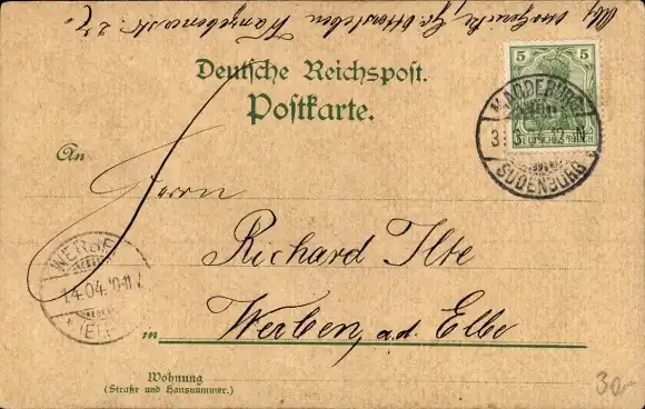 Zustand, siehe Scan, gelaufen, 1904- Inh. Fritz Beese - ca 14 cm X 9 cm