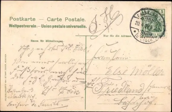 Zustand, siehe Scan, gelaufen, 1909 - ca 14 cm X 9 cm