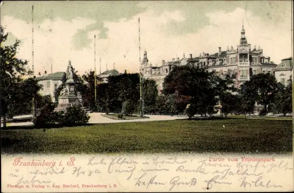 Ak Frankenberg in Sachsen, Friedenspark, Denkmal
