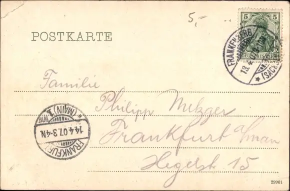 Zustand, siehe Scan, gelaufen, 1907 - ca 14 cm X 9 cm