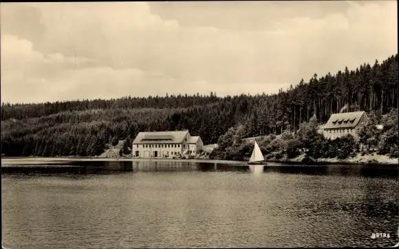 Ak Frankenhain in Thüringen, Lütschetalsperre, Segelboot