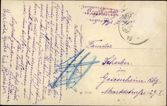 Zustand, siehe Scan, gelaufen, 1919 - ca 14 cm X 9 cm