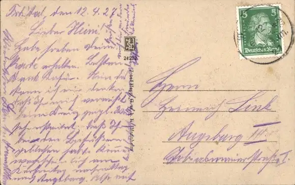 Zustand, siehe Scan, gelaufen, 1927 - ca 14 cm X 9 cm