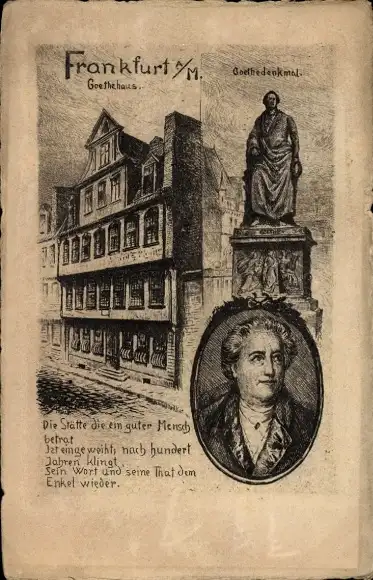 Ak Frankfurt a. Main, Goethehaus und Goethedenkmal