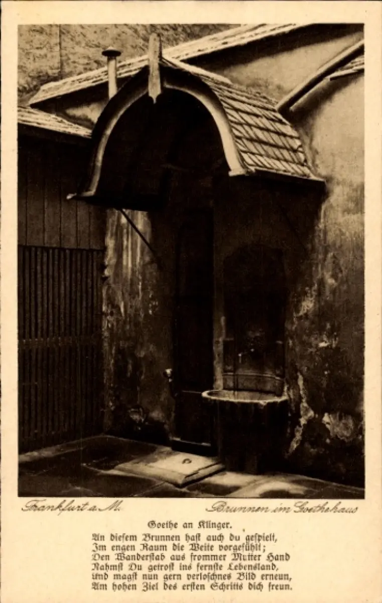 Ak Frankfurt am Main, Brunnen, Goethe, Klinger, Gedicht