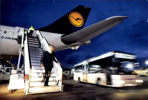 Ak Frankfurt am Main, Flughafen, Flugzeug D-AIKB, Lufthansa, Bus